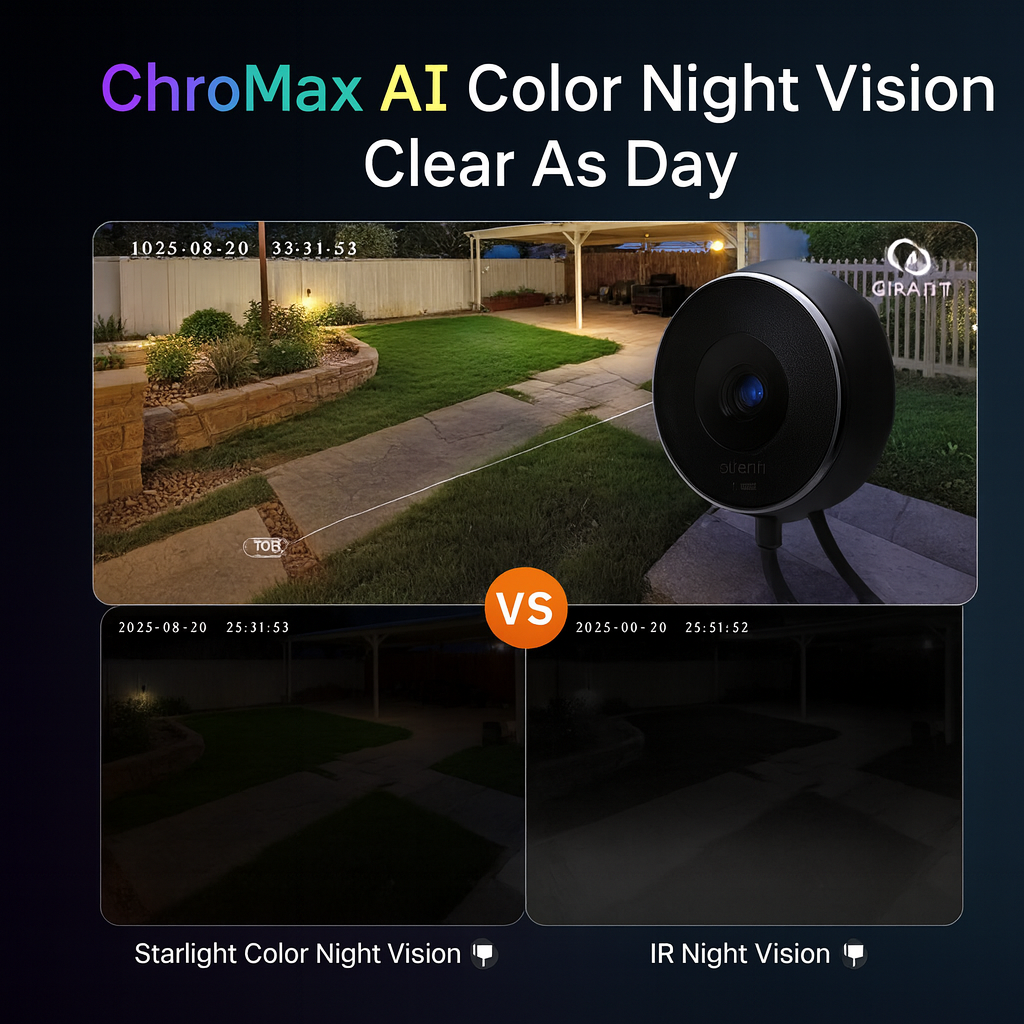 While ordinary cameras fade into shadows, Girafit’s ChroMax AI Color Night Vision turns darkness into crystal-clear daylight. Every detail stays alive in full color—lawns, faces, vehicles—where competitors show only dull gray or near-black screens. This isn’t just night vision; it’s a breakthrough that makes Girafit the only camera that truly never sleeps.