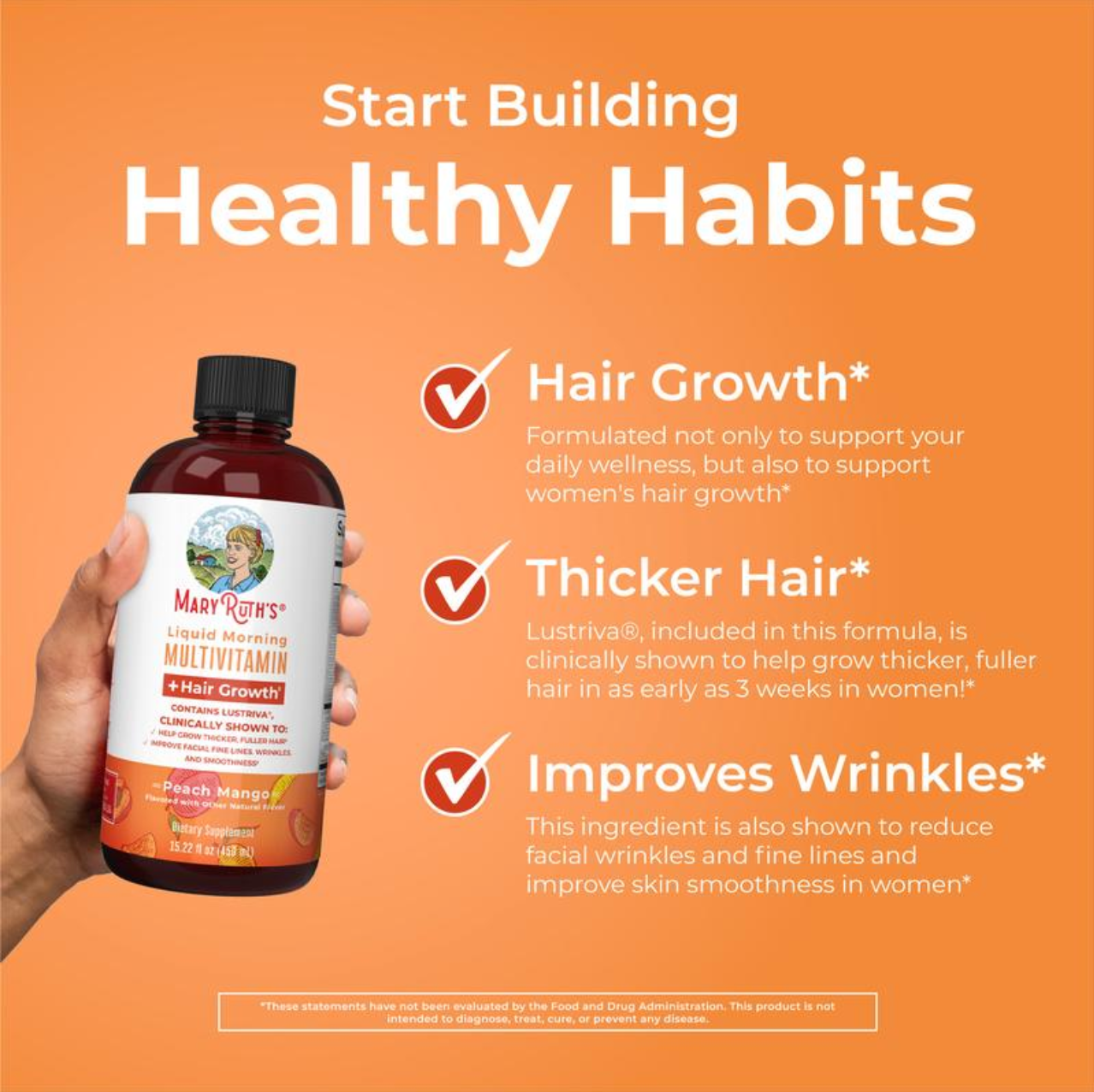 Meet Liquid Morning Multivitamin + Hair Growth.